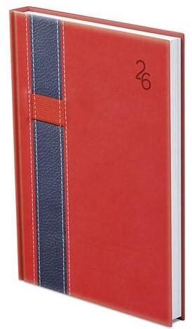 Kétféle, matt, bőrhatású és eltérő felületű, hőre színeződő műbőr bevonóval, varrással díszitett, gumis tolltartóval ellátott, fehér tömbös naptár, jelzőszalaggal és sarokperforációval (kivéve zsebnaptár). Vaknyomással és lézergravírozással emblémázható.